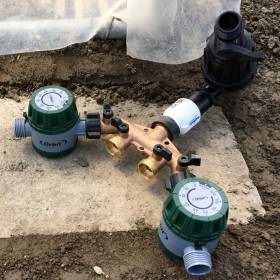 To water just the correct amount or a repetitive amount, I connect a timer to a faucet and direct the spray manually. Most often I use this to irrigate the raspberries. In a few cases I irrigate a flower bed manually through a timer, so I know how much water I have sprayed.